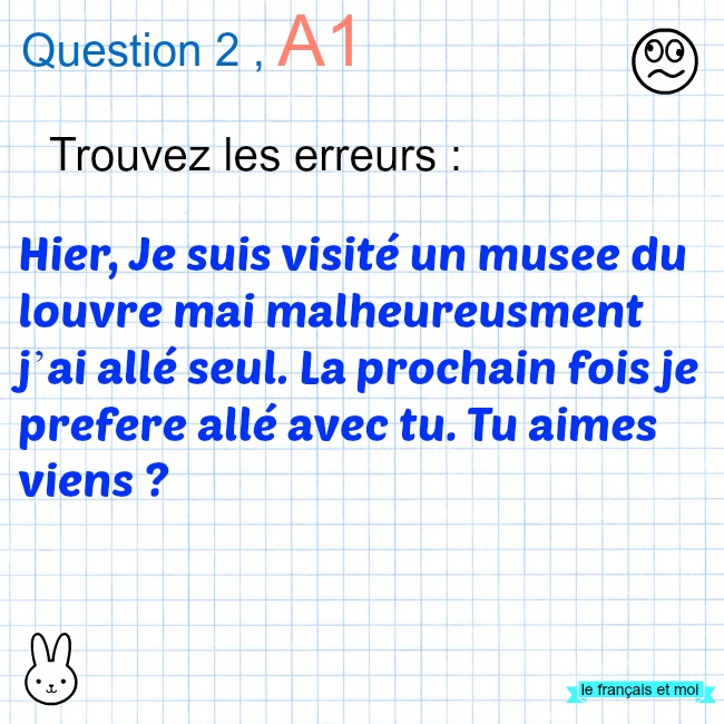 J’ai visité_le musée du louvre_je préfère aller avec toi_tu aimes venir … Quatre erreurs